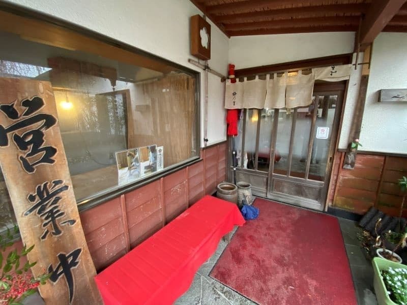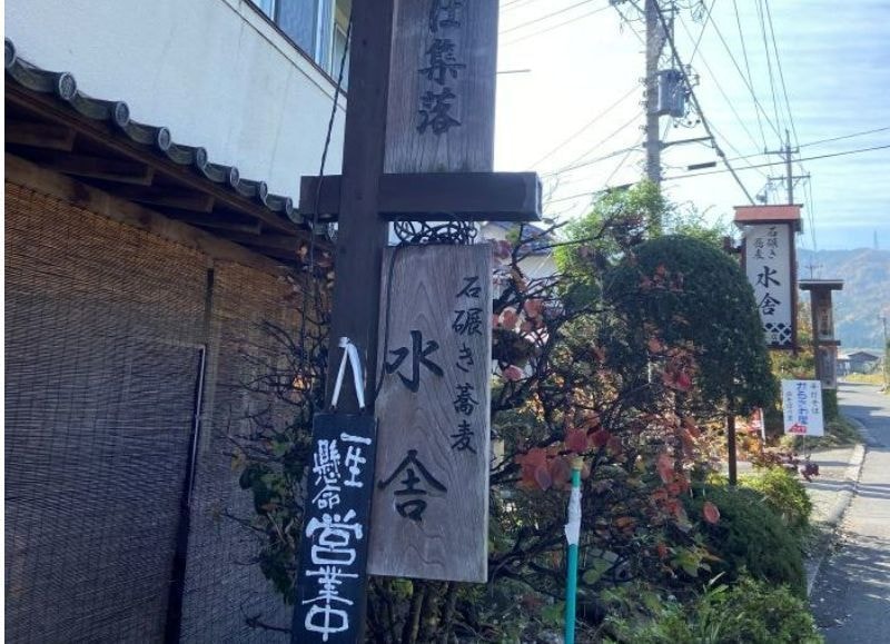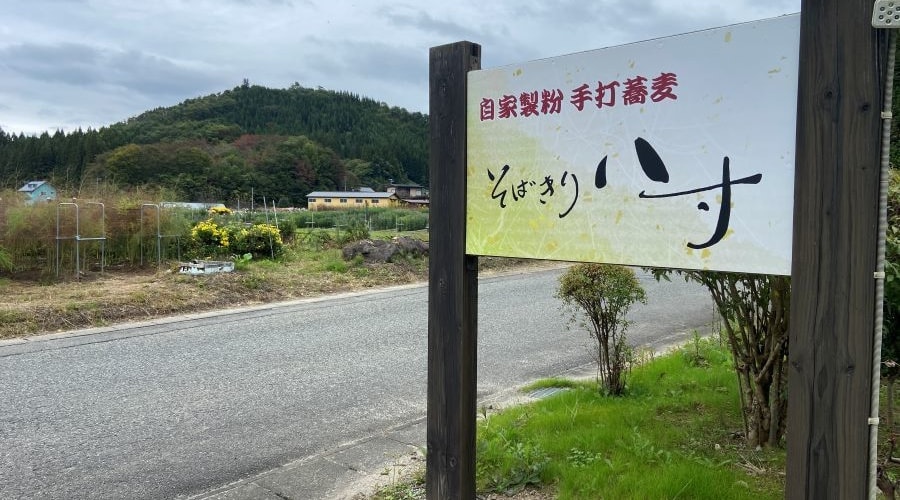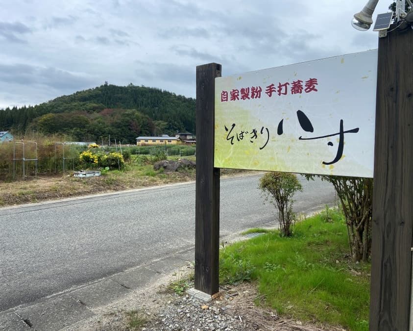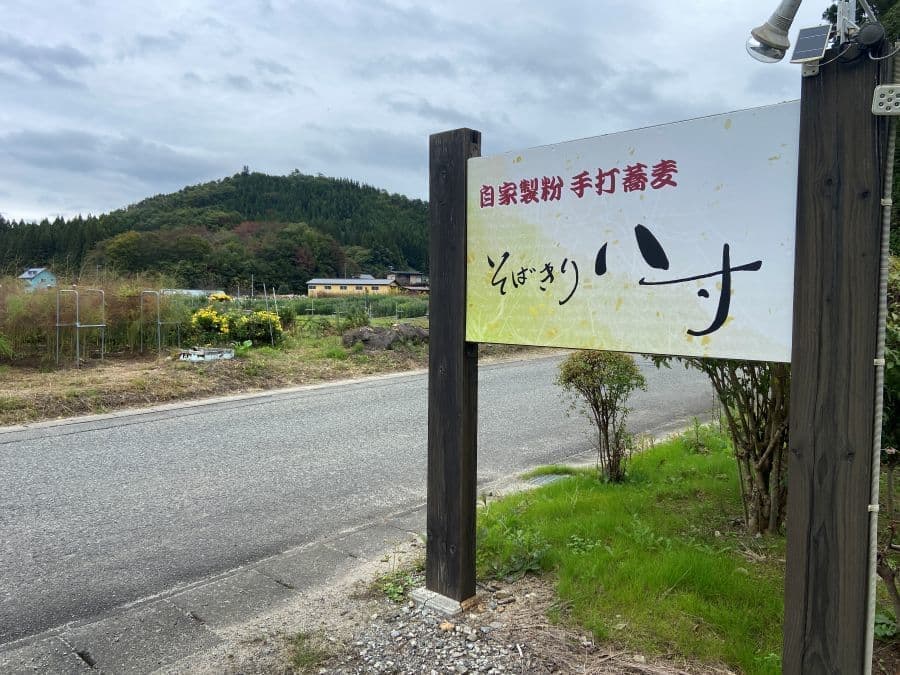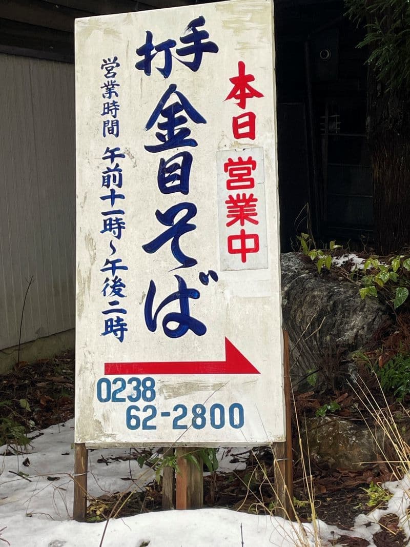 小国の中心部から結構山に入りますので途中(沖庭小学校跡との分岐路あたり)に営業をお知らせする看板が立ちます。
