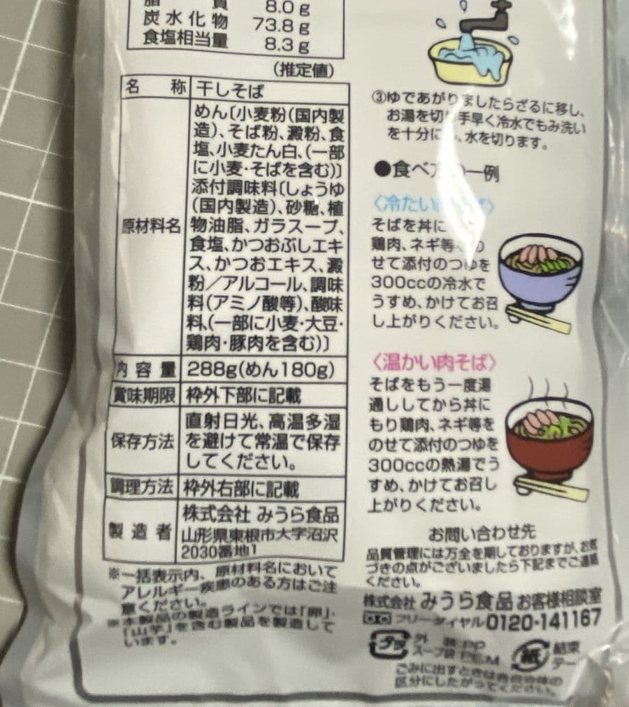 前回は温泉療養施設「いいでのゆ」で(喜多方市山都町一ノ木字越戸)の食堂でいただきましたが、今回は朝日屋食品さんの乾麺「会津 山都そば」です。