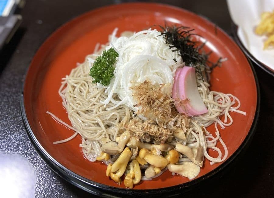 そば処「おお山」(三沢市)のそばと唐揚げ