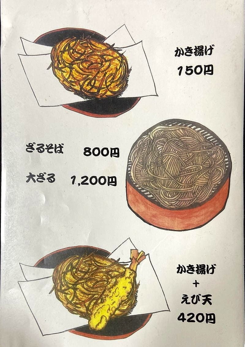 先輩の冷酒(枡にグラス)は大雪渓、つまみ2種がついて500円???かき揚げ150円とは、、、先輩も大いに気にっていただき、道案内のしがいもありました。