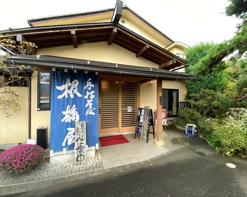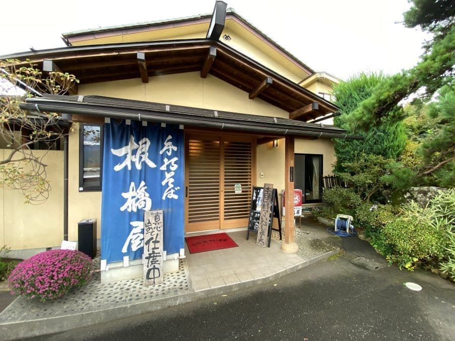 奥手の方「根橋屋」さんの駐車場に何とか1台の空きを見つけ駐車。