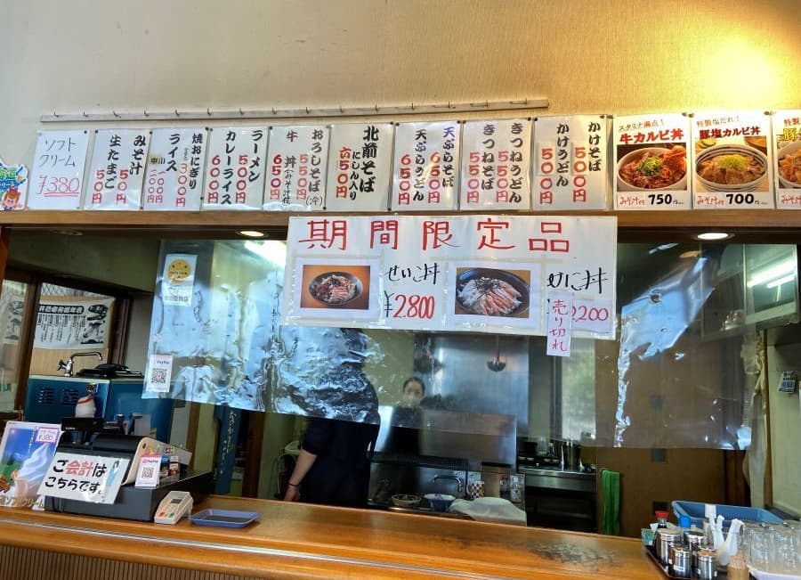 ただお正月とあってまだ営業を休む名店も多く、電信柱の根元の臭いを嗅ぎまくる犬のごとく、いくつかのお店を覗いてみた結果が道の駅「河野」(福井県南越前町大谷、国道8号線沿い)の軽食コーナーです。