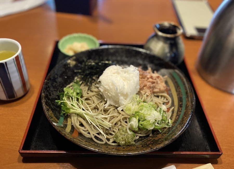 小生は村特産の長芋を細く長く切り、蕎麦と絡めた「やまっちそば」をいただきました。