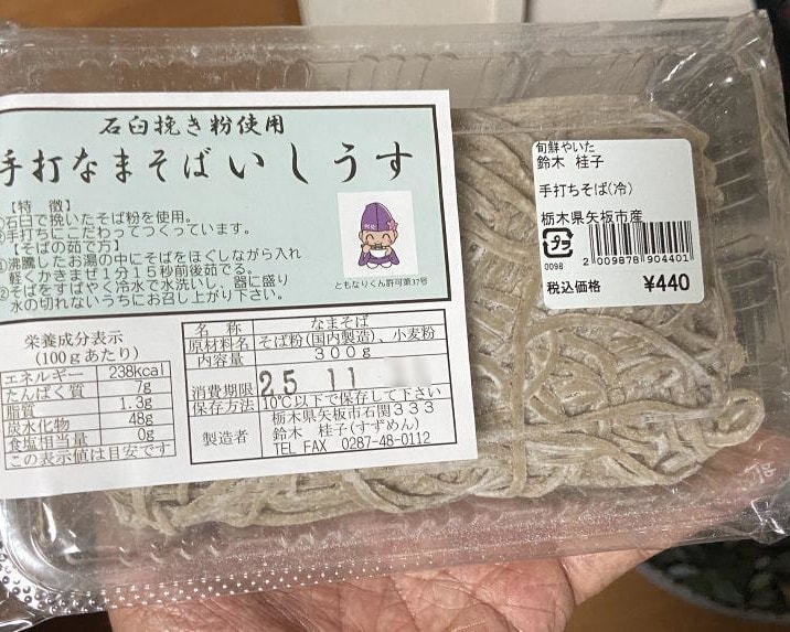 道の駅「やいた」では2020年に「内川そば」を頂いていますが、その道の駅の農産物直売所「旬鮮やいた」で売られているそばが美味しいと、矢板が地元の先輩ご夫婦が言うのでさっそくです。